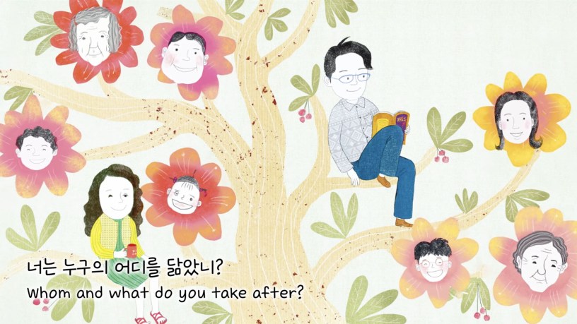 ★ 윤이는 가족을 많이 닮았어요. 샐쭉 웃을 때 보이는 눈은 아빠를 똑 닮았고, 개구리 발가락은 고모랑 똑같지요. 준이도 가족을 많이 닮았어요. 부끄러움을 많이 타지만 용기를 내는 건 엄마를 닮았고, 길고양이를 돌보는 따뜻함은 할머니를 닮았지요. 가족끼리는 태어날 때부터 닮은 곳이 있기도 하고, 함께 살아가면서 닮기도 해요. 우리는 가족의 어떤 점을 닮았을까요?