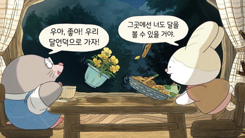 달언덕에 가면 보일까?』는 겁이 많은 토끼와 시력이 나쁜 두더지가 달이 크게 보이는 ‘달언덕’으로 여행하며 서로 돕고 의지함으로써 따뜻한 우정을 나누는 이야기입니다. 토끼와 두더지는 겁이 많고 시력이 나쁘다는 각자의 약점이 있지만, 여행하는 동안 서로를 비난하지 않고 보완해 주어 진정한 우정과 소중한 공동체의 의미를 알려줍니다.